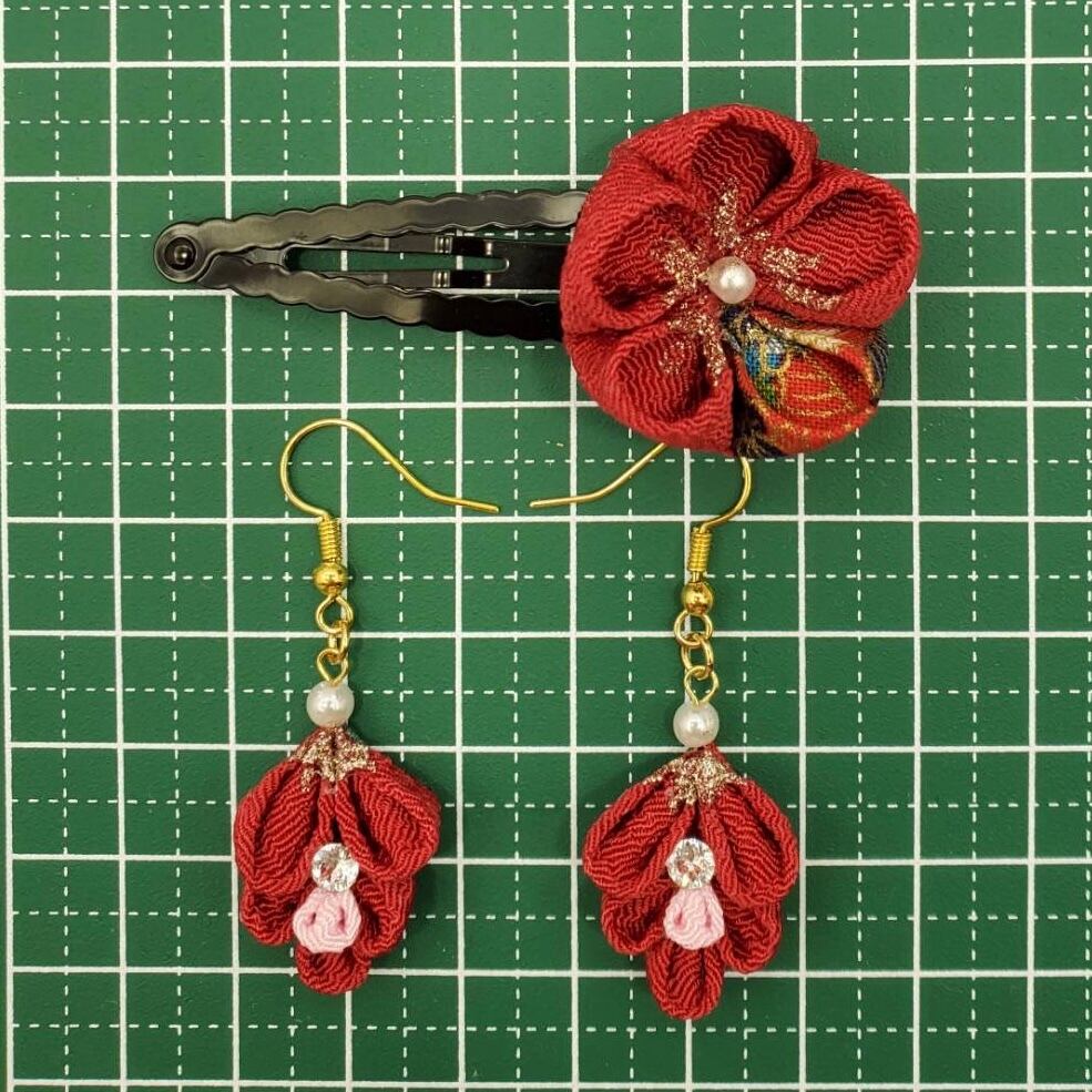 【つまみ細工 丸つまみ パッチン ピアス(イヤリング交換可)】 m-12