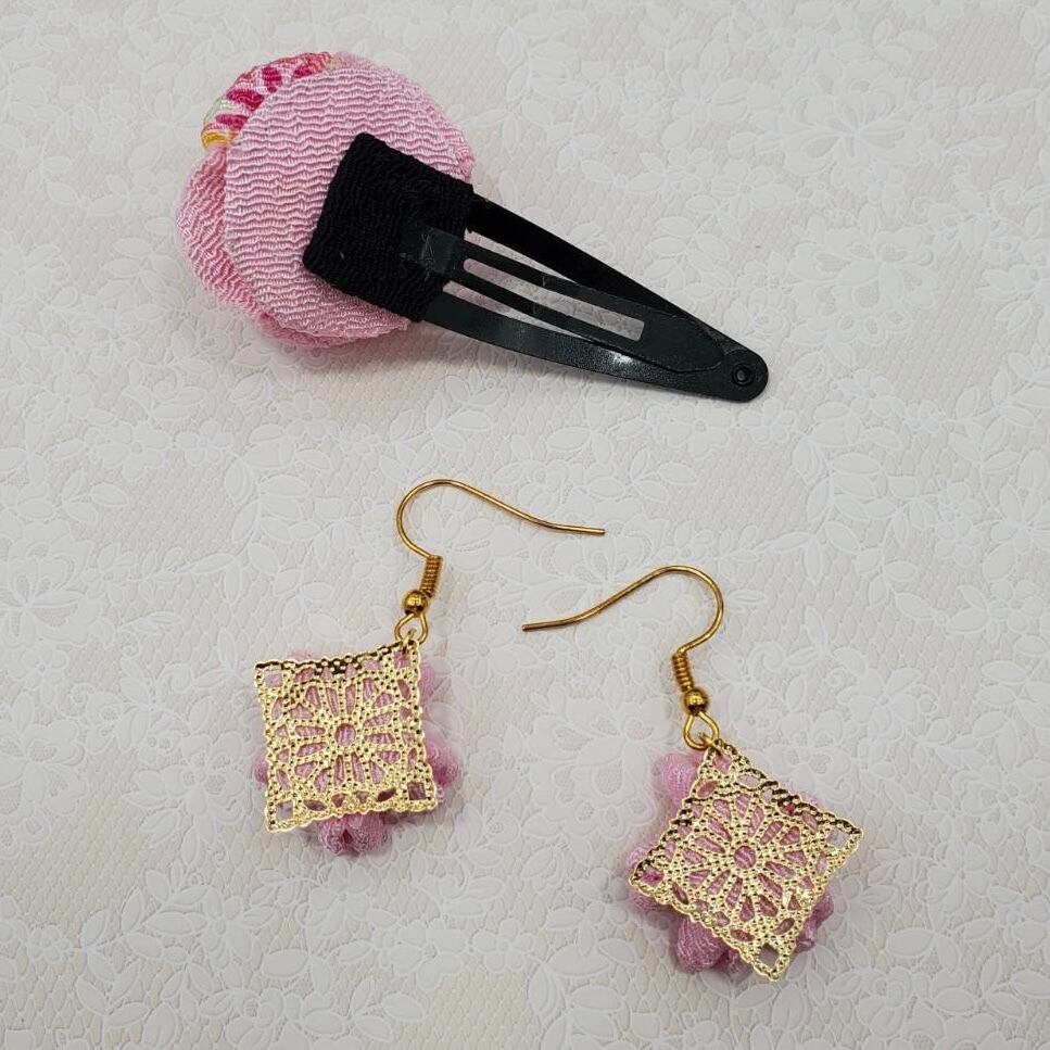 【つまみ細工 丸つまみ パッチン ピアス】 m-14