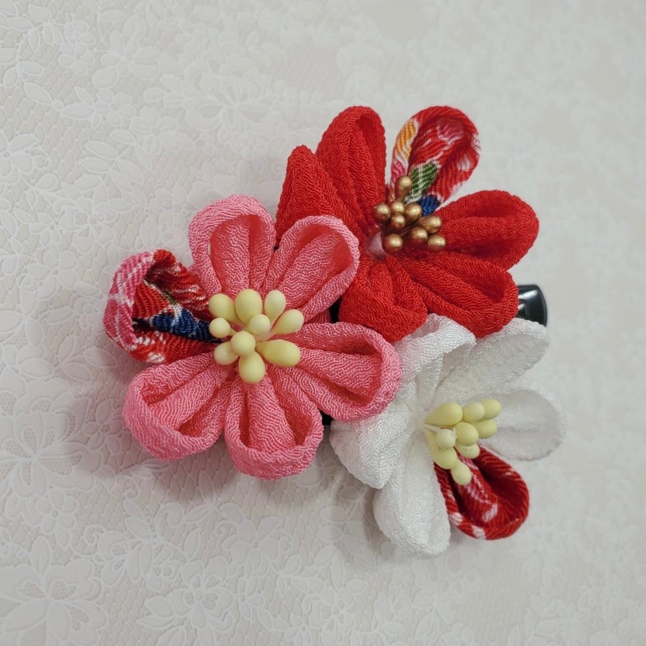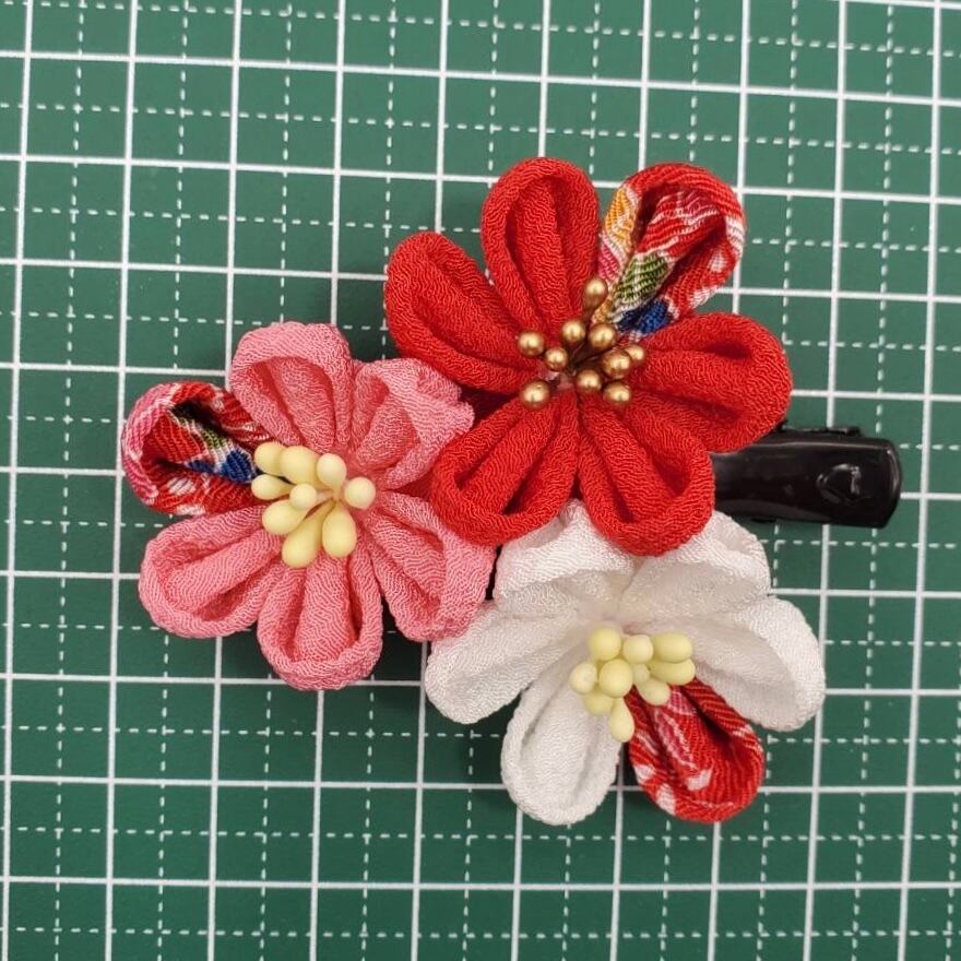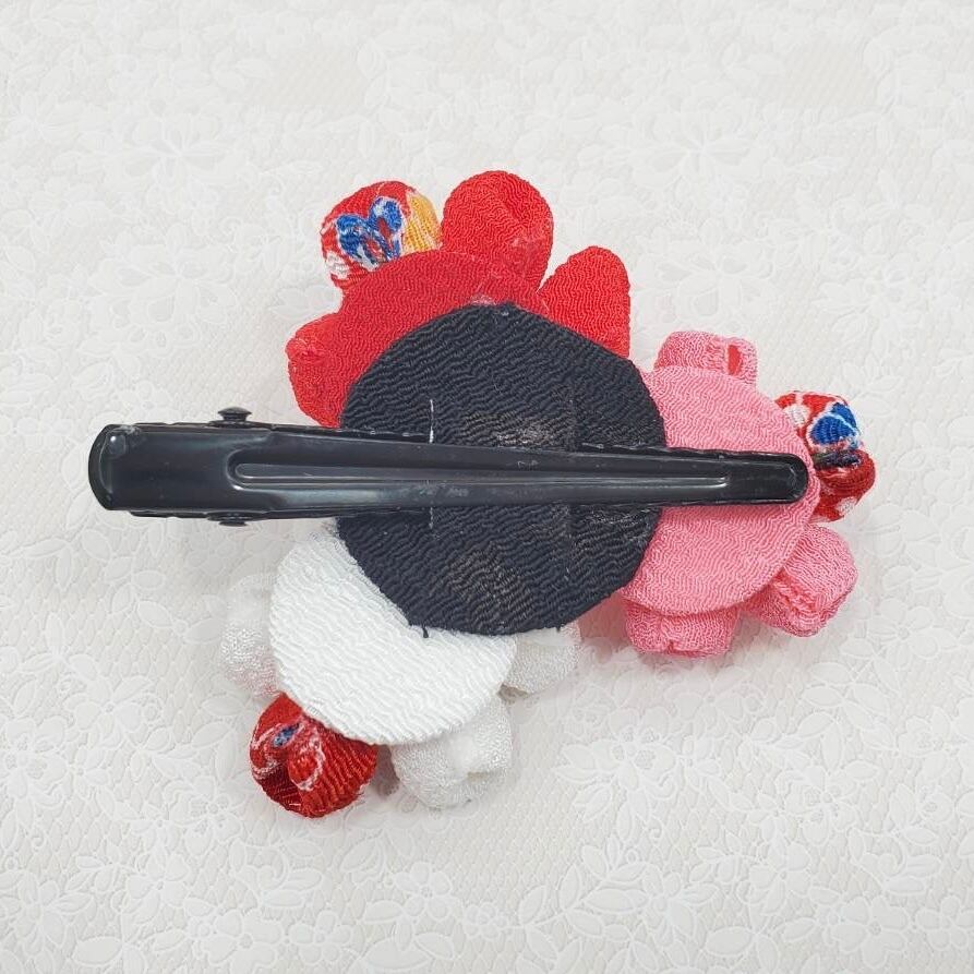 【和柄入り花座仕上げクリップ 紅白薄紅ヘップ】 m-24